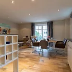 Un coin repas extérieur avec une cafetière/théière sont à la disposition des clients. La cuisine est également équipée de micro-ondes, d'un réfrigérateur et d'un four. Offrant une cuisine allemande, Die Räucherscheune est situé dans une zone de 1 km. L'arrêt de bus Kreisverkehr Dorfstrasse se trouve également à environ 5 minutes de marche de cette villa.